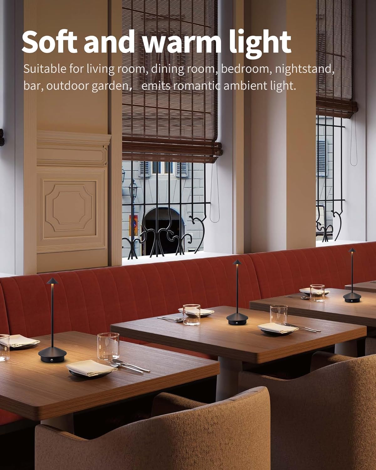 Modern Cordless Table Lamp Set of 2, Portable LED Desk Lamps, 5000mAh Rechargeable Battery Operated Lighting for Bedroom Dining Room Restaurant Coffee Shop Camping Night Light (Black)