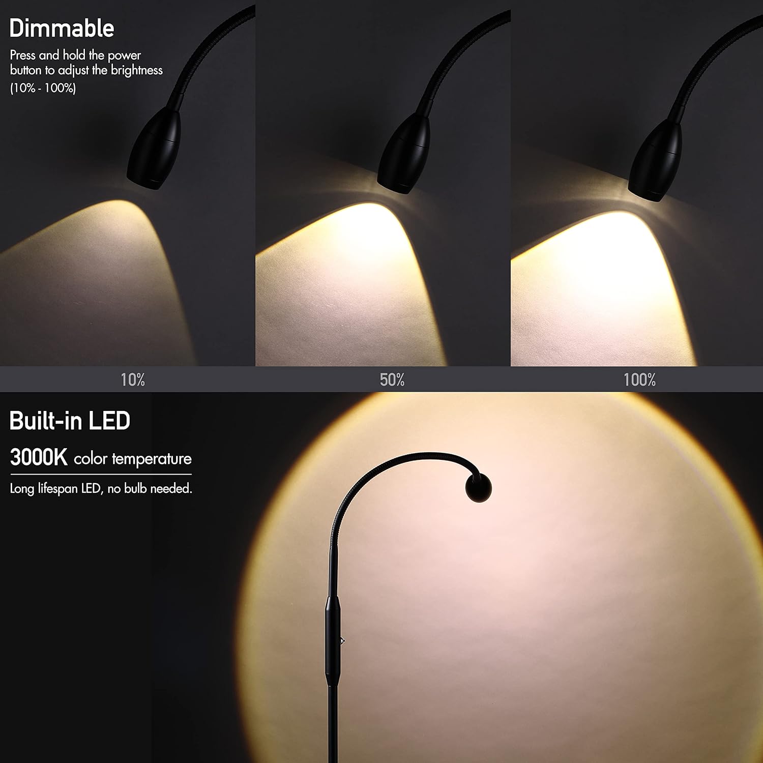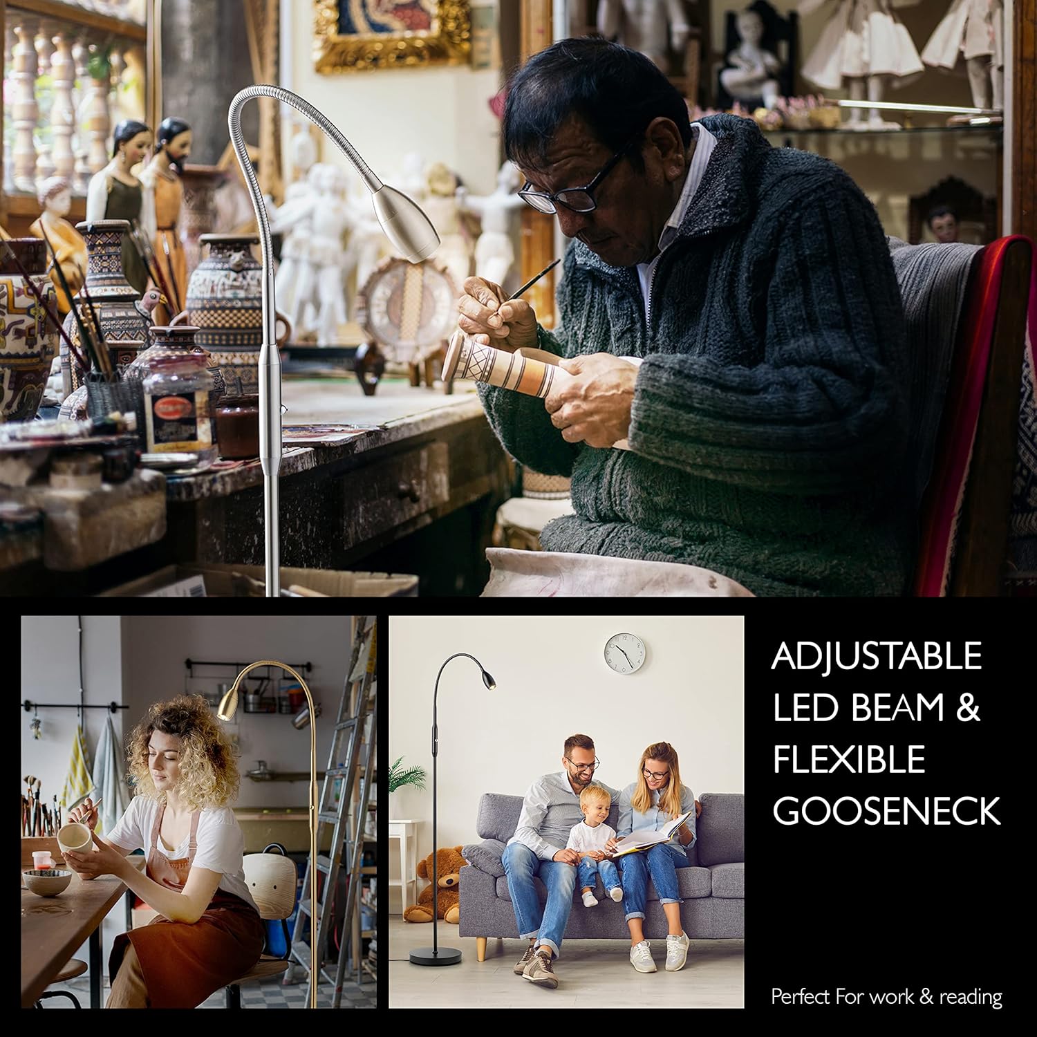 O’Bright Ray – Adjustable LED Beam Floor Lamp, Dimmable and Zoomable Spotlight, Flexible Gooseneck, Reading/Crafting Standing Lamp, Work Table Light, Matte Black